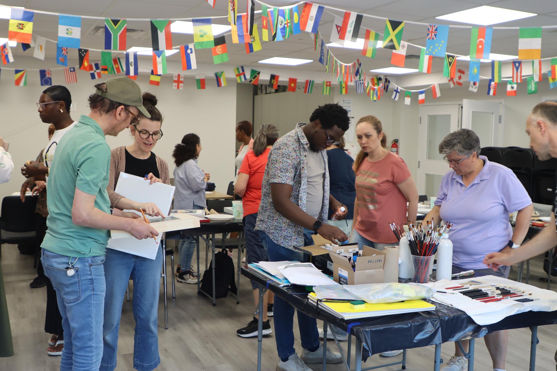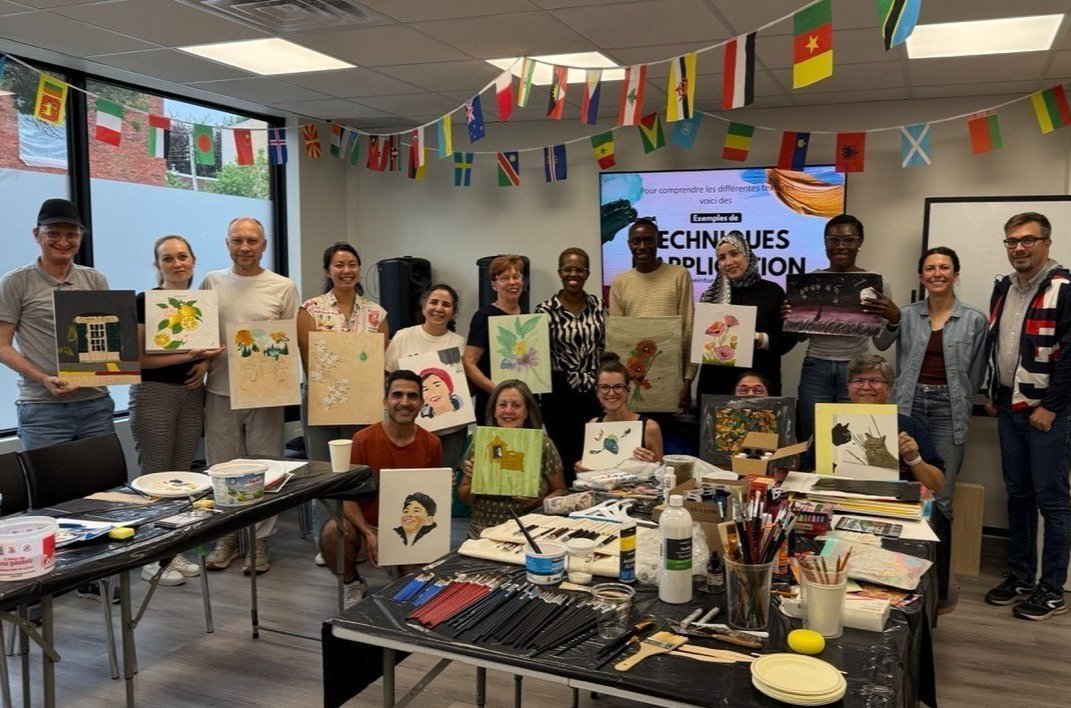 En juin, le projet « Scènes partagées : Dialogue inclusif » s’est poursuivi avec une série d’ateliers de peinture animés par l’artiste Isabelle Caron. Ces activités ont offert un espace chaleureux de rencontre, d’expression artistique et de dialogue interculturel.