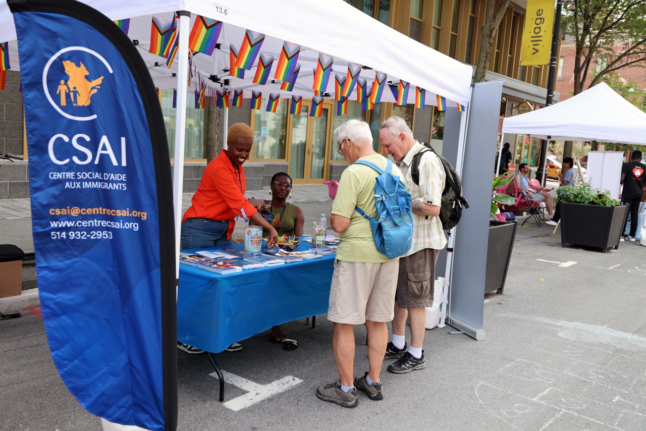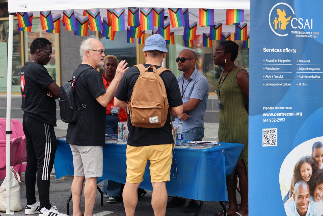 Présente le 8 août à la Journée communautaire de Fierté Montréal, notre équipe a accueilli de nombreuses personnes à notre kiosque. Objectifs atteints : présenter nos services, orienter vers les ressources pour personnes immigrantes et réfugiées et tisser des liens avec d’autres organismes. Plusieurs personnes ont manifesté leur intérêt pour le bénévolat et le jumelage. Les échanges avec des organismes (ex. GRIS‑Montréal, Maison Plein Cœur, etc.) ouvrent la voie à de futures collaborations.